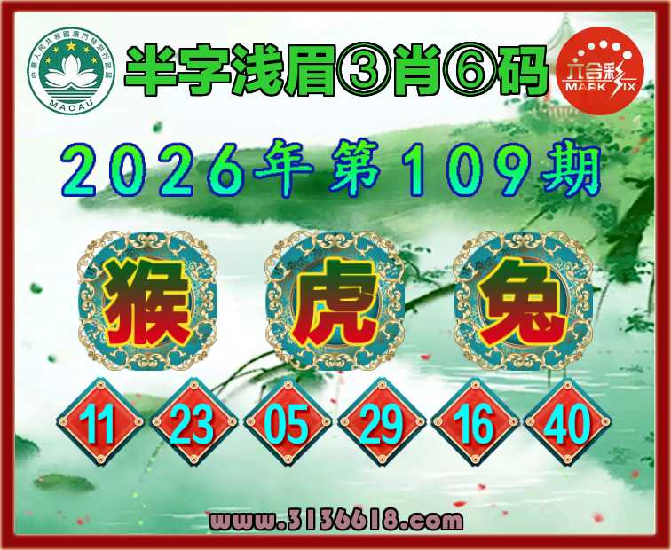 109期:【半字浅眉】 ♥️③肖⑥码♥️【猴虎兔】开:00准
