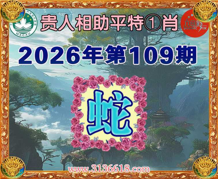 109期: 贵人相助 🐁平特①肖🐁【蛇】开:00准