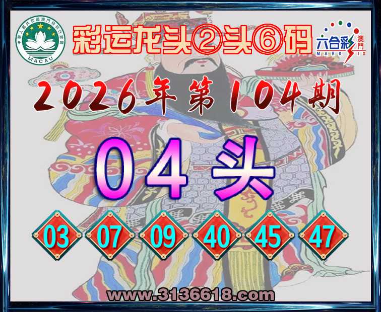 104期:《彩运龙头》  ♣️②头⑥码 ♣️【04头】开:马01准上榜高手