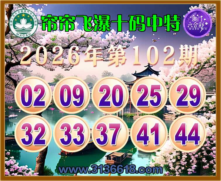 102期: 帘帘飞瀑 🏄‍♀️十码中特🏄‍♀️开:20准上榜高手