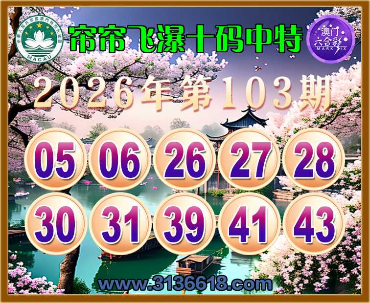 103期: 帘帘飞瀑 🏄‍♀️十码中特🏄‍♀️开:06准上榜高手