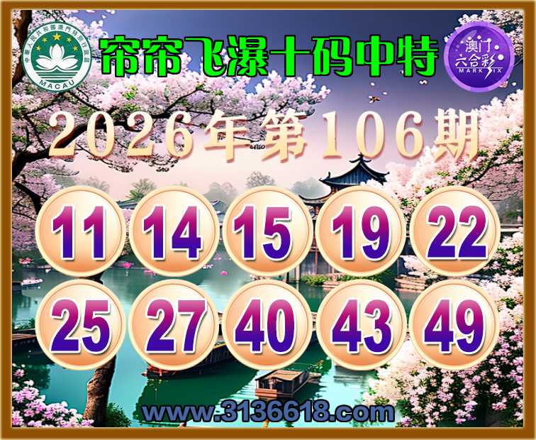 106期: 帘帘飞瀑 🏄‍♀️十码中特🏄‍♀️开:22准上榜高手