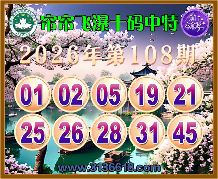 108期: 帘帘飞瀑 🏄‍♀️十码中特🏄‍♀️开:45准上榜高手