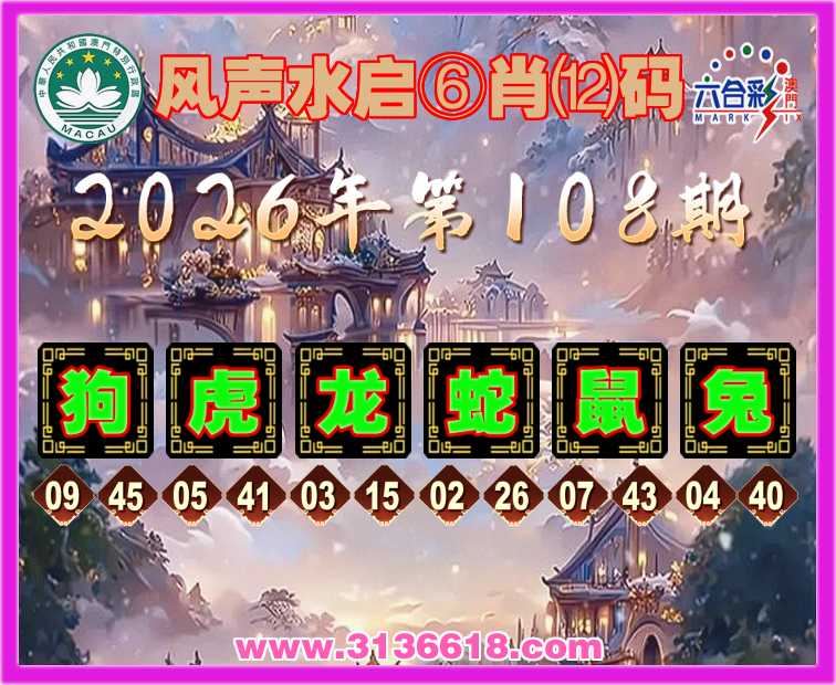 108期: ⌚《风声水启》⑥肖⑿码⌚【虎龙蛇鼠兔】开:狗45准上榜高手