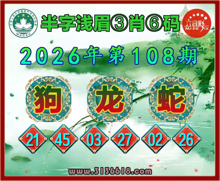 108期:【半字浅眉】 ♥️③肖⑥码♥️【龙蛇】开:狗45准上榜高手