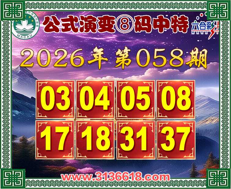 058期:【公式演变】 ☝️⑧码中特☝️开:31准上榜高手