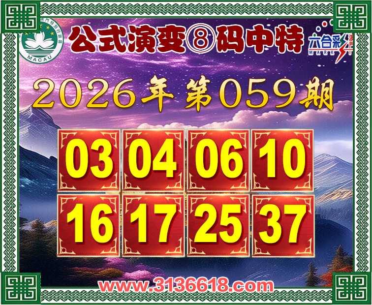 059期:【公式演变】 ☝️⑧码中特☝️开:10准上榜高手