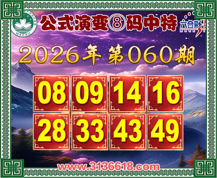 060期:【公式演变】 ☝️⑧码中特☝️开:09准上榜高手
