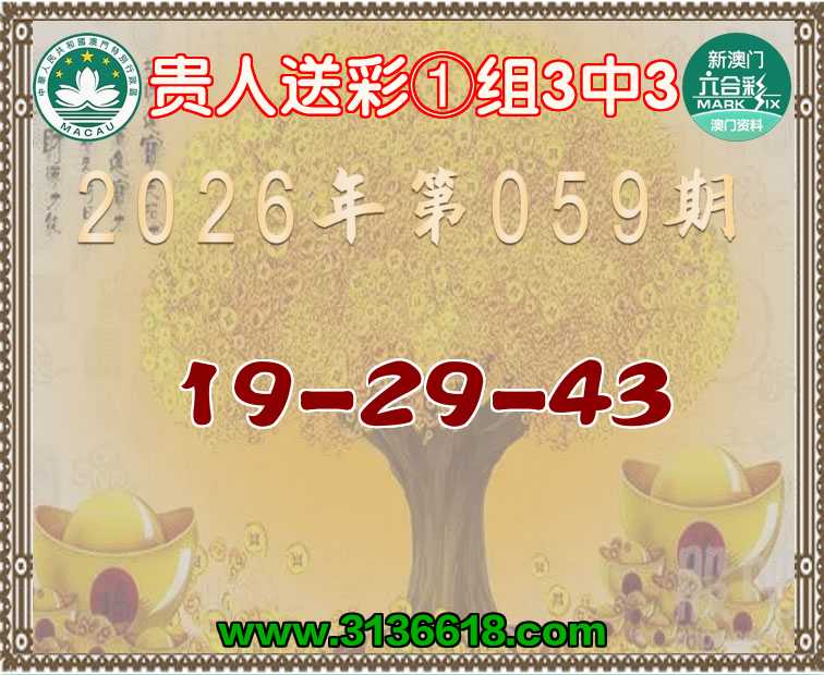 059期:《贵人送彩》 🧸①组3中3🧸【19-29-43