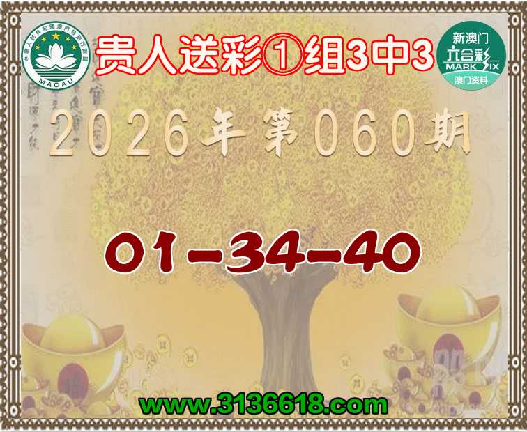 060期:《贵人送彩》 🧸①组3中3🧸【01-34-40