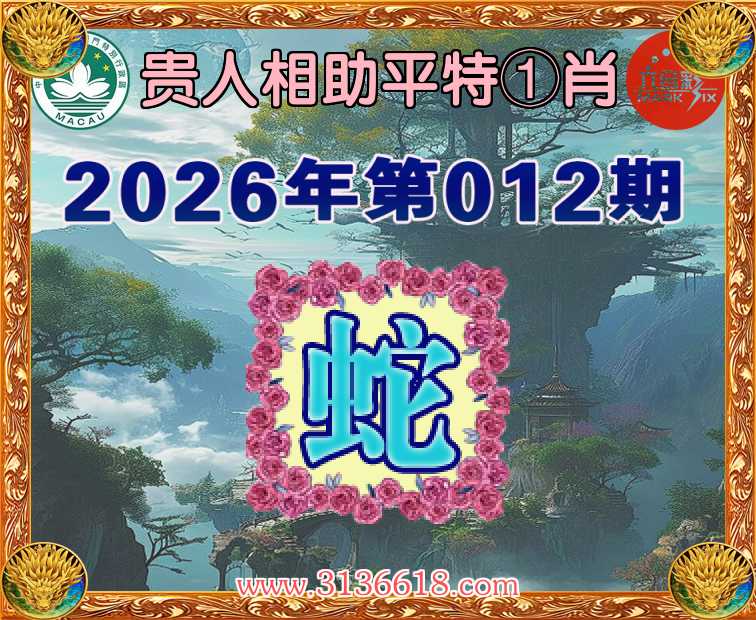 012期: 贵人相助 🐁平特①肖🐁【蛇】开:蛇25准上榜高手
