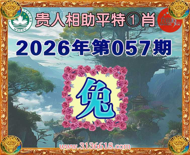 057期: 贵人相助 🐁平特①肖🐁【兔】开:兔40准上榜高手